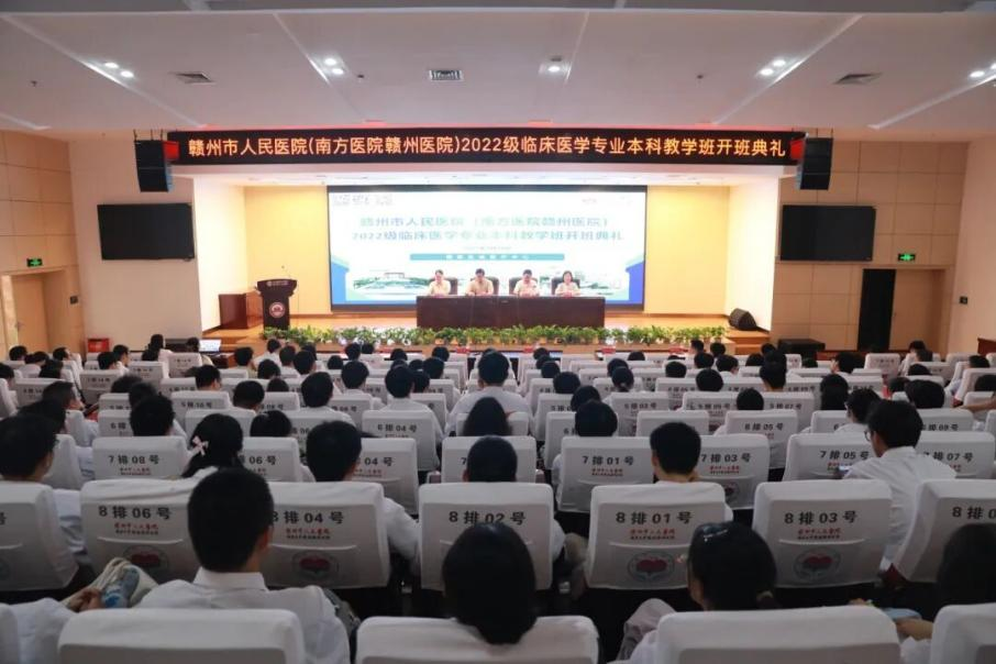 9月18日下午,第一临床医学院2022级临床医学专业本科5班和8班全程临床教学开班仪式在赣州市人民医院(南方医院赣州医院)举行。双方单位相关领导、各教研室主任、科教科人员及学生共200余人参加。