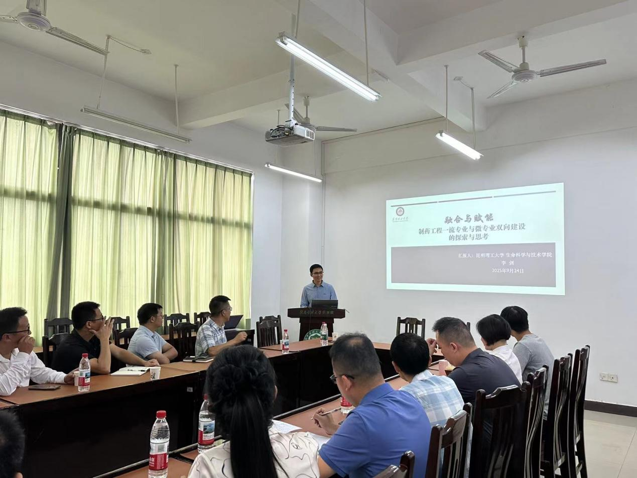 9月24日上午,药学院特邀昆明理工大学李剑教授来校作专题讲座。讲座由制药工程专业负责人陈伟铭主持,近20名专任教师积极参与并进行深入交流。
