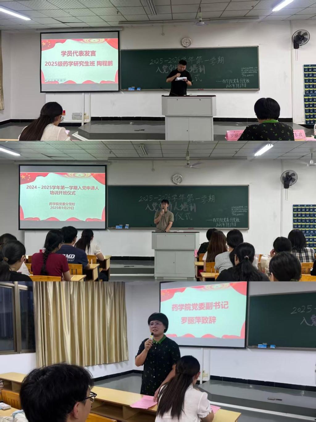 9月29日晚,药学院在黄金校区第二教学楼202教室举行2025-2026学年第一学期入党申请人培训开班仪式。学院党委副书记罗丽萍、相关支部书记与100余名入党申请人齐聚一堂,开启理想信念锤炼与党性修养提升的学习征程。