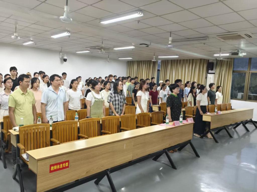 “起来!不愿做奴隶的人们!”伴随着庄严激昂的国歌声,开班仪式正式拉开帷幕。国歌毕,全体学员齐声高唱《我宣誓》,右手紧握、目光坚定,逐字逐句诵读入党誓词。铿锵誓言在教室内久久回荡,既是青年学子心向党组织的赤诚告白,更让庄重热烈的氛围浸润全场,使每一位参与者都深切体悟到信仰的力量。