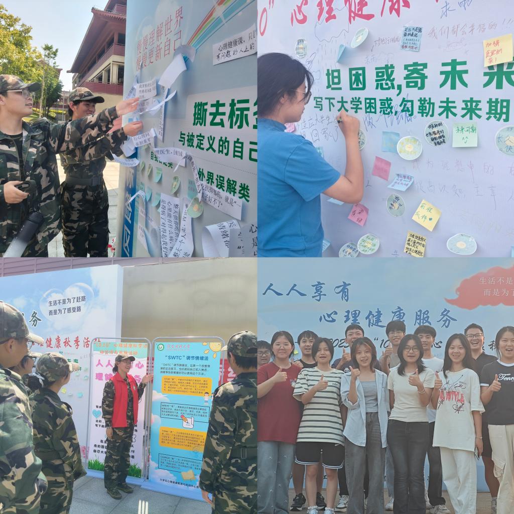 活动吸引了同学们踊跃参与。在“标签活动”环节,同学们从展板上撕下那些曾经让自己困扰的标签,如同卸下积压许久的心理包袱,并在便签纸上认真写下对自己的鼓励以及对未来的坚定期许,真挚热忱的话语温暖着每个驻足的心灵;在“精神卫生知识宣传”环节,心理老师和心理社团学生热情地向同学们分享“10·10”世界精神卫生日知识及心理调适技巧;在“心理知识竞答”环节,同学们积极答题,于竞答中积累心理知识,提升心理健康素养。