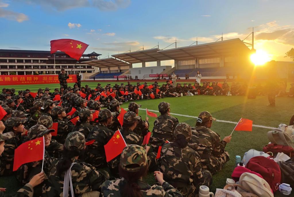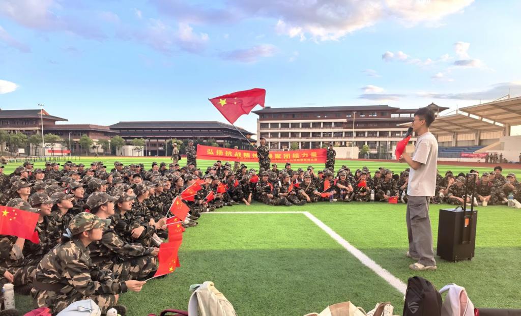 活动现场,新生辅导员率先走上台前领唱,《没有共产党就没有新中国》的激昂旋律率先响起。新生们挥舞手中小红旗,紧跟节奏放声歌唱,歌声铿锵有力;《我和我的祖国》旋律流转时,师生们眼神坚定,将对祖国的依恋融入歌声;《游击队歌》《强军战歌》《当那一天来临》奏响,昂扬的曲调更点燃全场热情,展现出青年学子的蓬勃朝气。