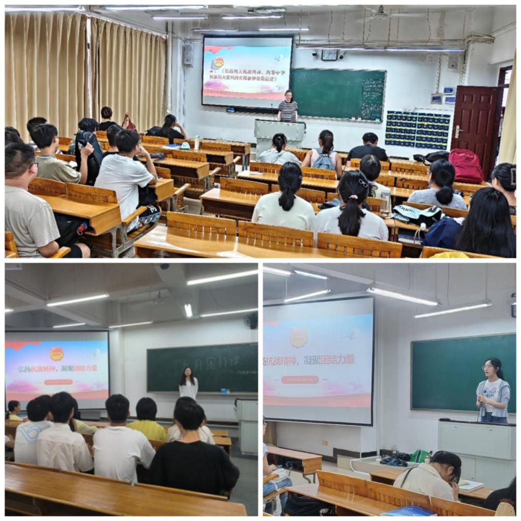 各团支部围绕“纪念中国人民抗日战争暨世界反法西斯战争胜利 80 周年”开展主题团课,组织团员青年深入学习习近平总书记在《求是》杂志发表的重要文章《弘扬伟大抗战精神,向着中华民族伟大复兴的光辉彼岸奋勇前进》的核心要义。通过专题学习,引导学生深刻把握伟大抗战精神的丰富内涵与时代价值,同时将抗战精神与红医精神相结合,让同学们认识到红医精神中 “政治坚定、技术优良,无私奉献、救死扶伤,艰苦奋斗、勇于开创”的内涵与抗战精神一脉相承。作为中华民族宝贵精神财富,两者在实现民族复兴征程中都具有重要意义,激励着药学院的青年学子们在未来的医学道路上,以坚定的信念和高尚的医德医风为患者服务。