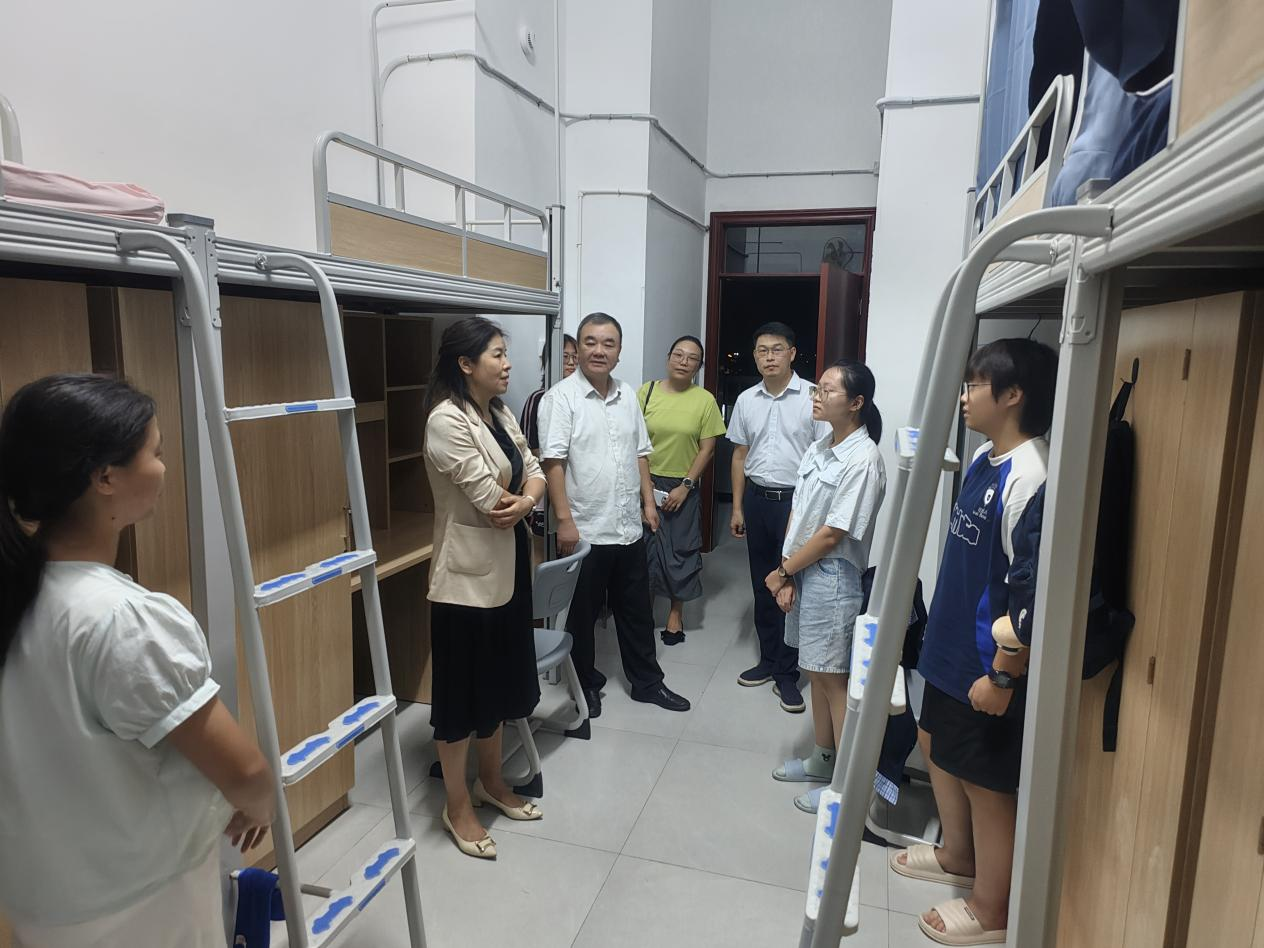 为保障2025级新生顺利入校生活和学习,报到前夕,基础医学院党委书记陈联娇、党委副书记刘志春带领辅导员逐一走访了新生宿舍,认真检查水电、设备设施、安全卫生等问题。在专业负责人的带领下学院领导仔细踏看了实验室和教室,为新生未来的学习生活提前做好考察。9月6日晚,学院对10名新生迎新志愿者提前进行了系统的培训,保证迎新工作的顺利推进。