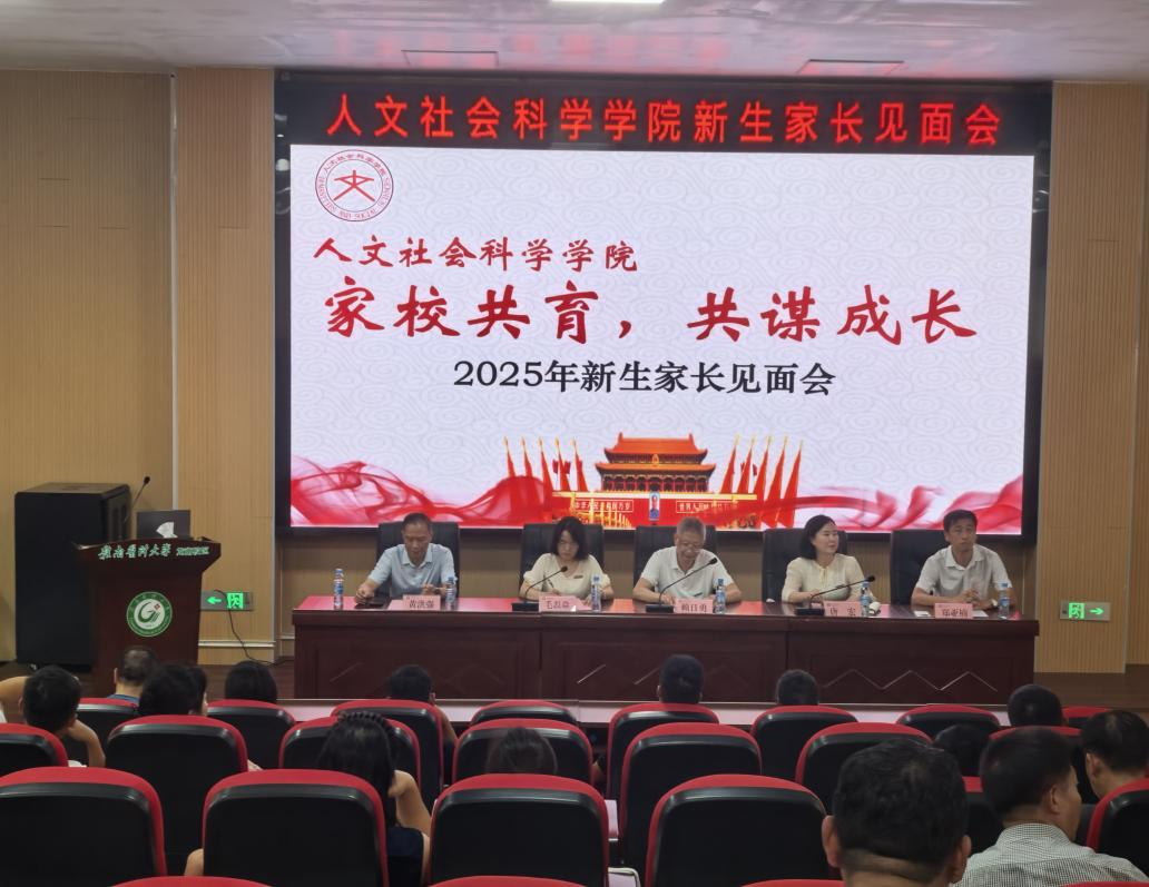 9月4日下午,人文社会科学学院在龙南校区举行2025级新生家长见面会。见面会以“家校共育 共谋成长”为主题,旨在加强家校沟通,帮助新生家长全面了解学院概况、专业建设及学生培养体系,共同助力新生快速适应大学生活、成长成才。学院党政领导、专业负责人、学工办老师、班主任及150余名新生家长参加会议。会议由学院党委副书记毛磊焱主持。