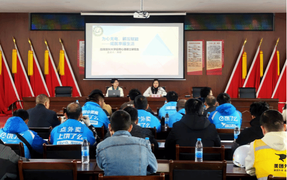 23日下午,朱熠以《为心充电,解压赋能——成就幸福生活》为题开讲心理健康课。针对外卖骑手、快递员等群体常面临的超时配送、投诉压力等问题,他结合案例解析压力对身心的影响,传授“STOP情绪调节技术”“4-7-8腹式呼吸法”等实用技巧,带领学员开展互动按摩操,现场氛围轻松活跃,帮助新就业群体掌握科学解压方法,以积极心态面对工作生活。李晓文携学校“小药箱健康+”志愿服务队,为参训新就业群体赠送100个急救小药箱。药箱内配备碘伏、创可贴、晕车药等常用物资,贴合户外工作需求。志愿队成员还现场讲解药品使用方法,传递健康防护知识,用实际行动践行“红医志愿服务进基层、进社区,感知社会、服务群众”的理念。