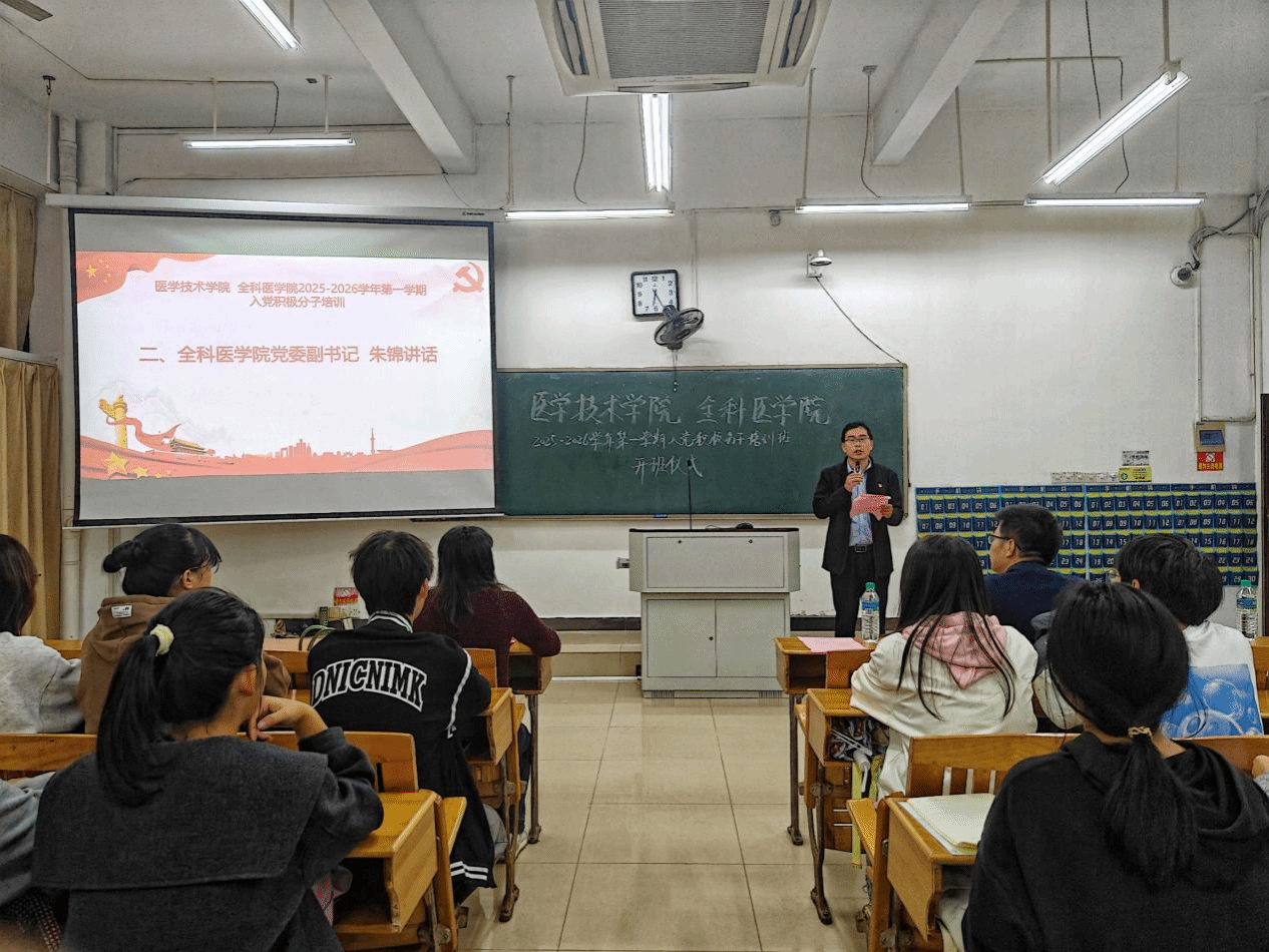 开班仪式在庄严的国歌声中拉开序幕。全科医学院党委副书记朱锦作开班致辞,他表示,入党积极分子培训是党员发展程序中的关键环节,更是为了帮助同学们扣好“政治第一粒扣子”,希望全体学员在本次培训中做到提高政治站位,深刻认识“为何学”——把稳思想之舵;坚持学思践悟,准确把握“学什么”——夯实信仰之基;严守纪律规矩,始终牢记“怎么做”——永葆政治本色。