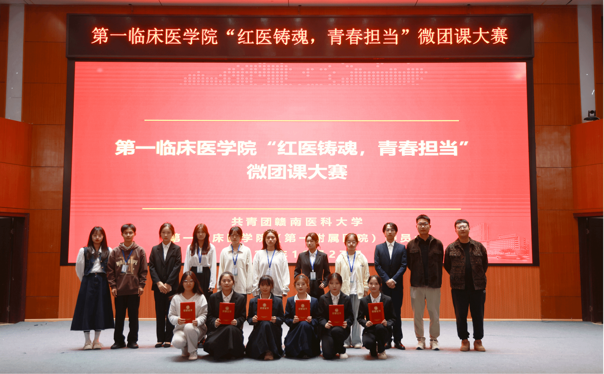 为深入贯彻新时代青年思想引领工作要求,将“红医精神”全面融入青年团员思想建设,10月27日,第一临床医学院举办“红医铸魂,青春担当”微团课大赛决赛。活动以赛事为平台,融合理论学习与思想交流,引导青年学子深化理论认知、汲取实践力量,传承红色基因、坚定理想信念,让“红医”初心在青春征程中深深扎根、茁壮成长。