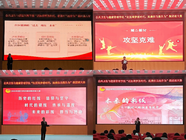 为深化“红医卫士”党建品牌建设,将红医精神全面融入青年团员思想政治教育,10月28日晚,公共卫生与健康管理学院在蓉江校区举办2025年“红医筑梦新时代 挺膺担当展作为”微团课大赛,该院党委副书记曾发挥、团委书记胡丹、参赛选手以及学生代表共300余人参加活动。
