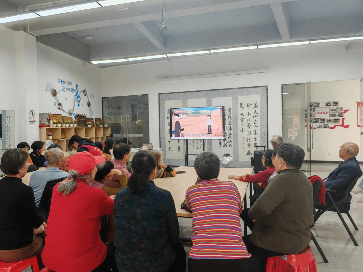 荧幕亮起,随着该院制作的红色动漫《唐义贞:只要一息尚存,定为革命奋斗》播放,所有人的目光都聚焦在画面上,凝视着那位用生命践行革命誓言的巾帼英雄,她的坚定信仰与无畏气魄透过影像直抵人心。此外,志愿者还为长辈讲述“红色华佗”傅连暲、“戴菩萨”戴济民等红医故事,激励着大家在平凡生活中传递温暖与力量。