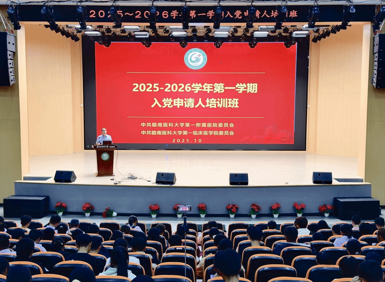 10月29日至30日,第一附属医院(第一临床医学院)分党校在龙南校区举办2025-2026学年第一学期入党申请人培训班开班仪式暨线下培训会议。第一附属医院党委委员、第一临床医学院党委副书记肖殿民出席会议,各学生党支部书记及全体入党申请人共计480余人参会,本科生(研究生)党总支副书记华亮主持仪式。
