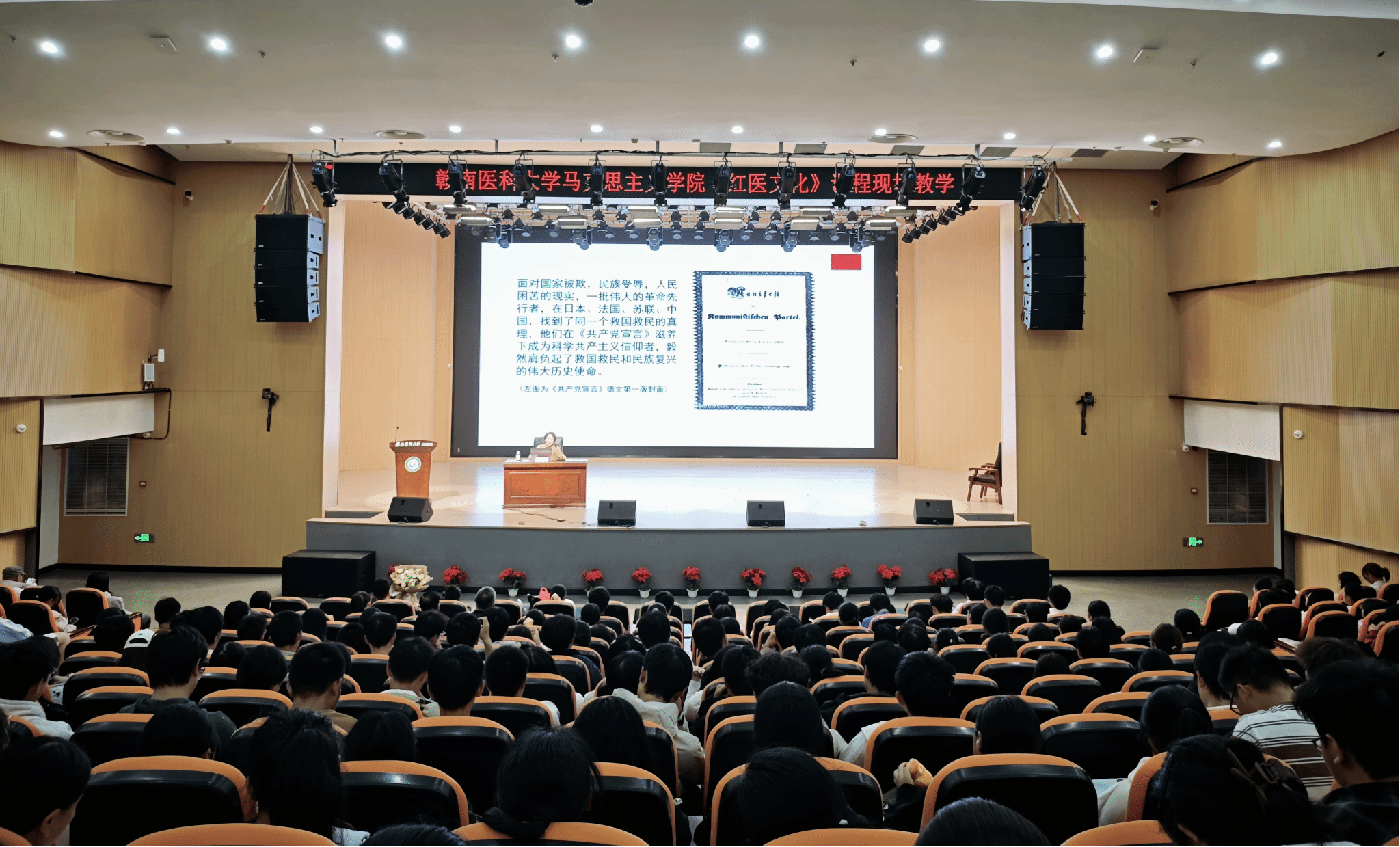 11月6日,马克思主义学院在龙南校区开展《红医文化》课程现场教学,特邀彭湃烈士的孙女彭伊娜教授担任主讲,2025级500余名新生共同聆听。