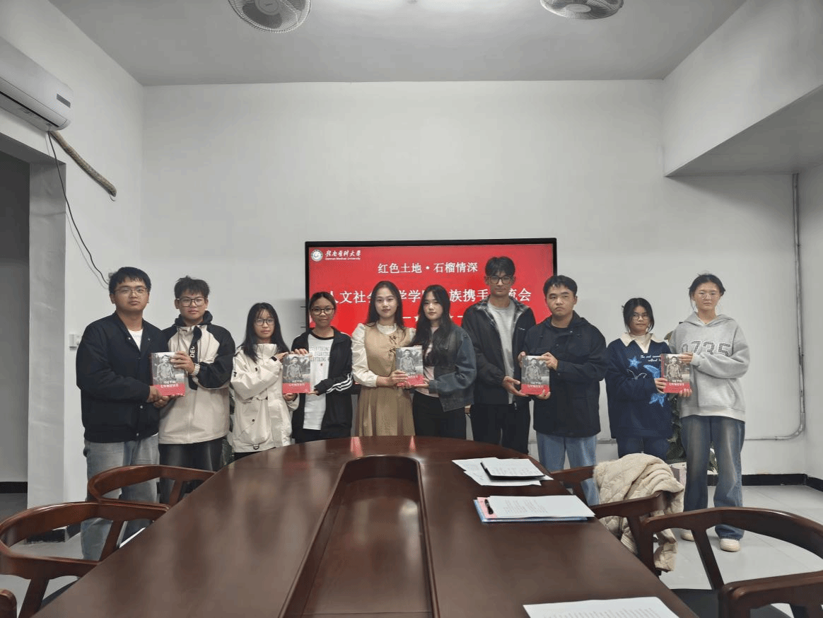 活动在融洽的交流中拉开序幕,学院少数民族学子踊跃发言,畅谈家乡风物、分享民族文化、倾诉入学来的点滴感悟。随后开展“红色土地 石榴情深”结对共建仪式,少数民族学生与汉族代表结对互赠书籍,并合影留念,象征着各民族像石榴籽一样紧紧相拥。