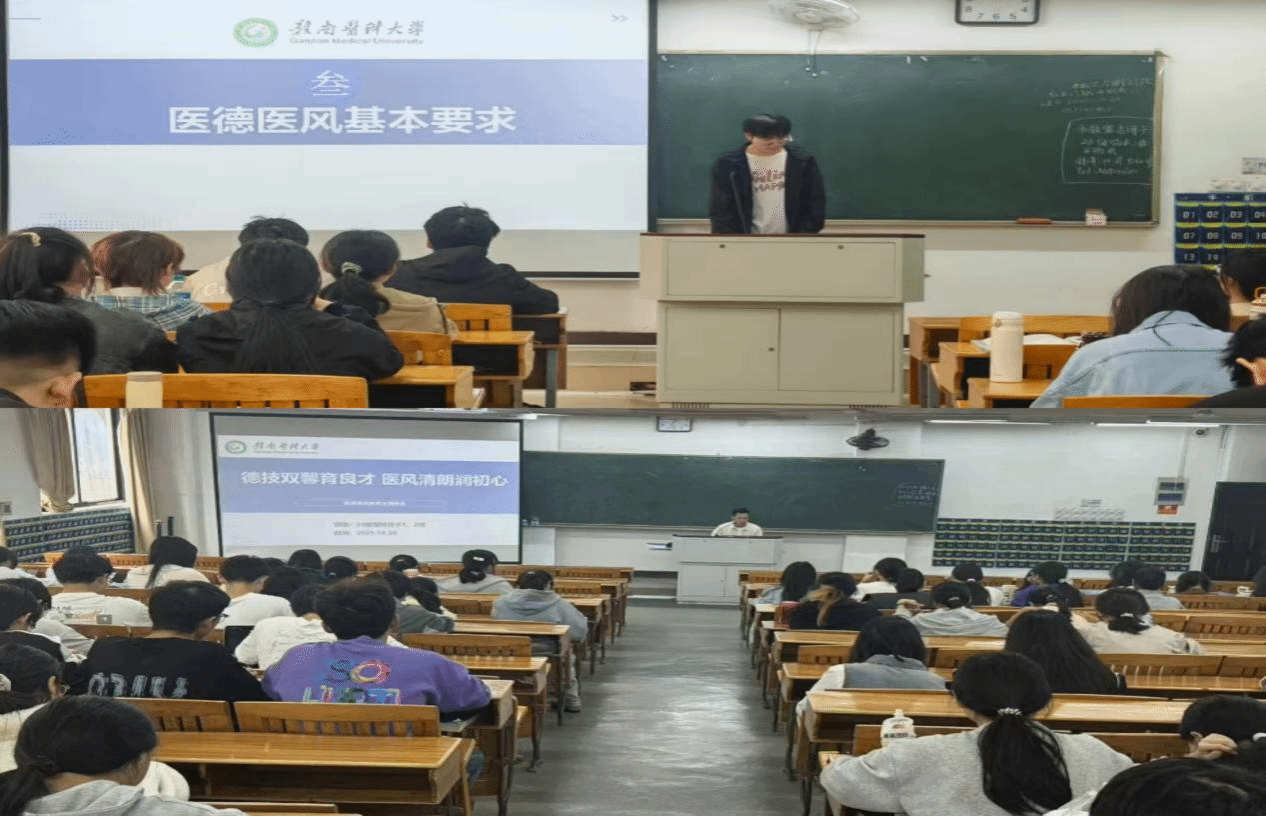 班会以分享赣南苏区时期的红医先辈事迹拉开序幕,结合行业典范与优秀校友扎根基层的新时代红医故事,深入解读医学职业准则的核心内涵。在探讨专业技能标兵的成长轨迹中,同学们进一步筑牢“健康所系,性命相托”的医者初心,一致表示将把医德修养锤炼与专业技能提升贯穿日常学习始终,以实际行动践行医者使命。