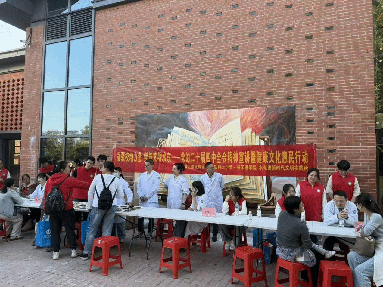 初冬暖阳照浮桥,文明新风润民心。近日,由章贡区委宣传部、赣南医科大学第一临床医学院、水东镇新时代文明实践所联合主办的“凝聚校地力量,赋能文明水东”文明实践活动,在水东镇老浮桥人文艺术村落火热举行。活动以“理论宣讲+健康服务”一站式模式,把党的创新理论与优质医疗资源同步送到群众“家门口”。