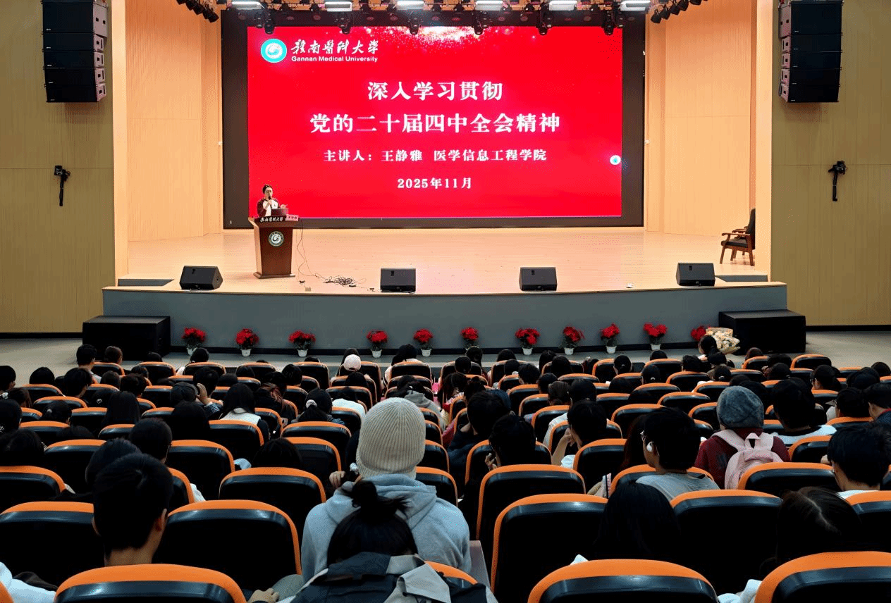 为深入学习贯彻党的二十届四中全会精神,引导青年学子将个人成长融入国家发展大局,11月27日,医学信息工程学院党委副书记王静雅在龙南校区为2025级本科新生开展党的二十届四中全会精神专题宣讲。