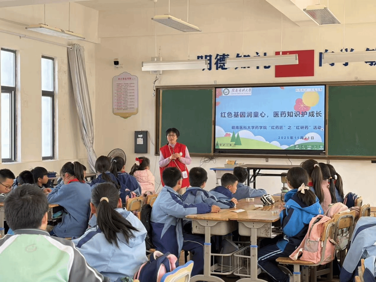 “红药匠”精神传薪火,医药科普护成长。此次志愿服务活动以赣南红色资源为根基,以医药专业知识为载体,通过“实践体验+精神传承”的创新形式,让孩子们在动手实践中传承红色精神,在科学探索中树立健康理念。未来,赣南医科大学药学院教工第六党支部将持续助推“红药匠”品牌活动,深化校地联动,把更多优质的医药科普资源带入校园,让红色精神与科学精神在孩子们心中同频共振,为成长赋能,为未来筑基。