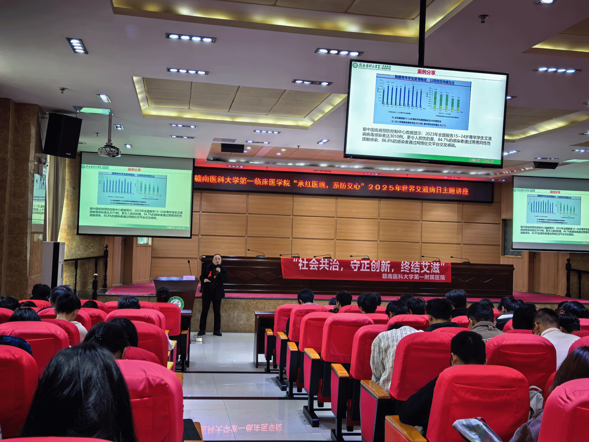 12月1日“世界艾滋病日”当天,学院特邀第一附属医院公共卫生科(预防保健科)副科长刘华之开展“社会共治、守正创新、终结艾滋”专题讲座。刘华之从艾滋病认知、传播途径、预防措施三大维度展开,用通俗语言解读专业知识。她结合真实案例,警示师生摒弃侥幸心理,明确了性、血液、母婴三大主要传播途径,破除了日常接触感染的认知误区,并给出全程使用安全套、拒绝共用注射器、避免危险医疗行为等针对性预防方案。同时,宣讲特别倡导无歧视理念,呼吁尊重感染者隐私、杜绝差别对待,传递人文关怀。