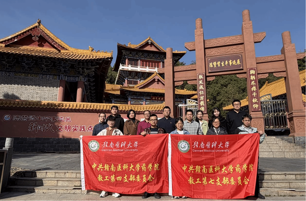 近日,药学院党委委员、副院长黄浩带队,药学院教工第四党支部联合第七党支部赴南康陈赞贤生平事迹展纪念馆,开展“缅怀革命先烈,铸魂红药育人”主题教育活动。通过重温革命历史、感悟先烈精神,在红色教育中凝聚和增强育人力量,并进一步强化新时代“红药匠”的使命与担当。