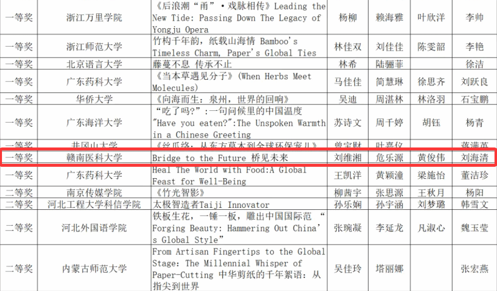 近日,第八届“外教社杯”全国高校学生跨文化能力大赛短视频大赛组委会公布全国赛获奖名单,我校学子刘维湘、危乐源、黄俊伟组成的参赛团队脱颖而出,短视频作品《桥见未来》荣获本科院校组一等奖。