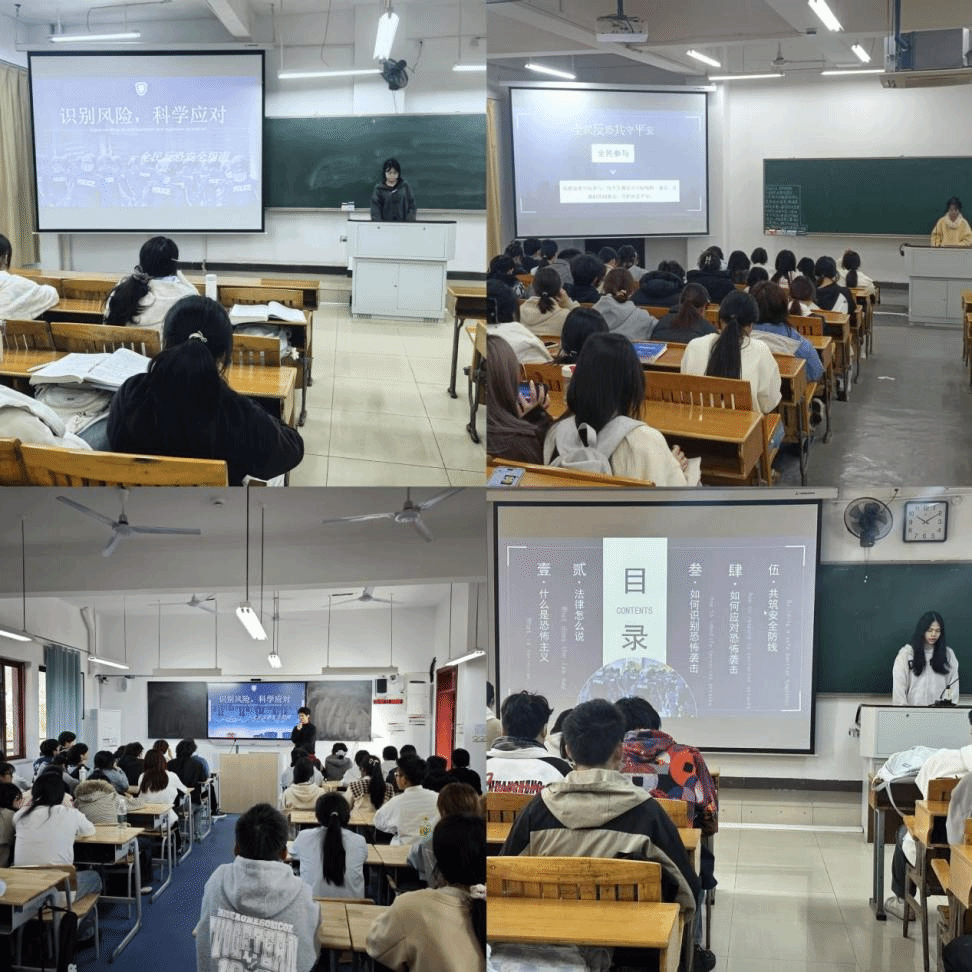 各班结合近期典型反恐案例,详细讲解恐怖活动的类型、危害及识别、防范方法,重点普及《中华人民共和国反恐怖主义法》相关知识,引导学生认清恐怖主义的真实面目,增强法治观念和自我保护能力。