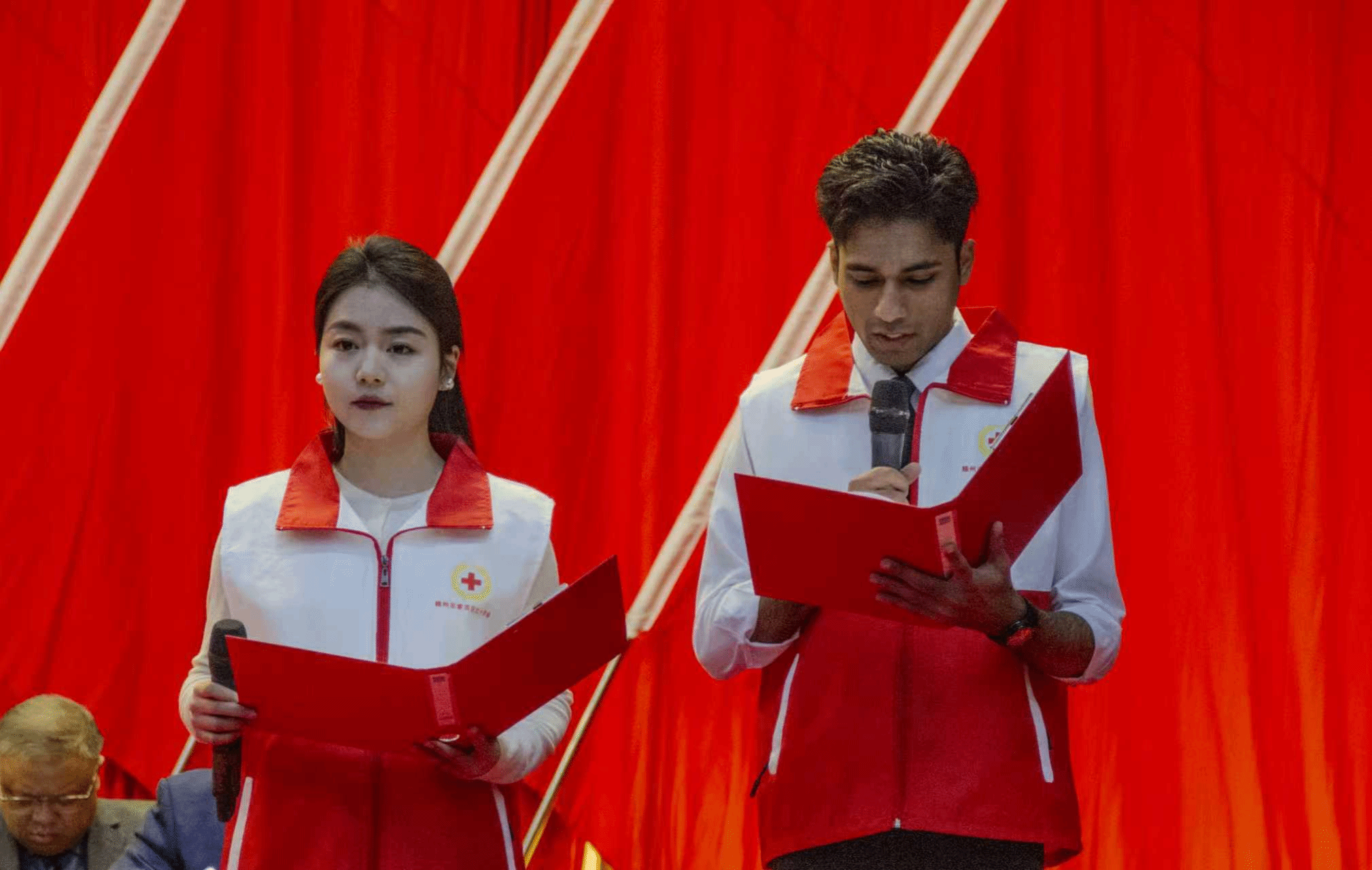 近日,赣州市章贡区红十字会第三次会员代表大会召开,我校国际教育学院2021级留学生MUHAMMAD MOAAZ MALIK等三位同学作为国际志愿者代表受邀出席。