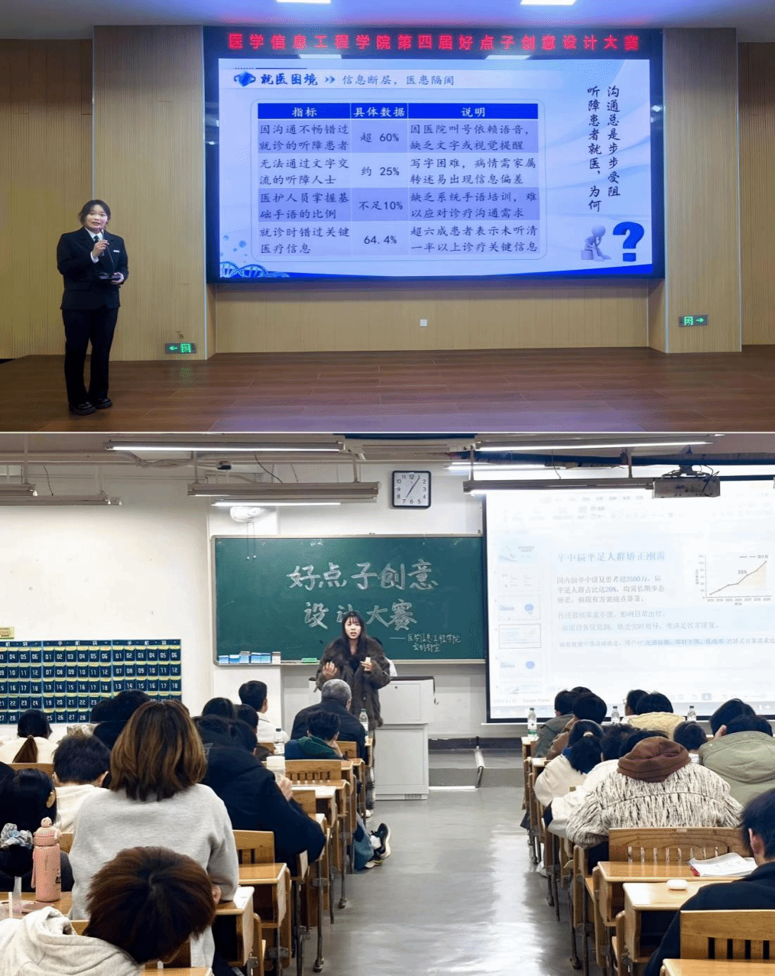 为深化“红芯医工”特色育人,激发学生创新潜能,近期,医学信息工程学院分别在蓉江校区、龙南校区举办“好点子”创意设计大赛。该院各专业青年教师、学工办全体辅导员及400余名学生齐聚现场,共赏创意碰撞、灵感迸发的精彩时刻。