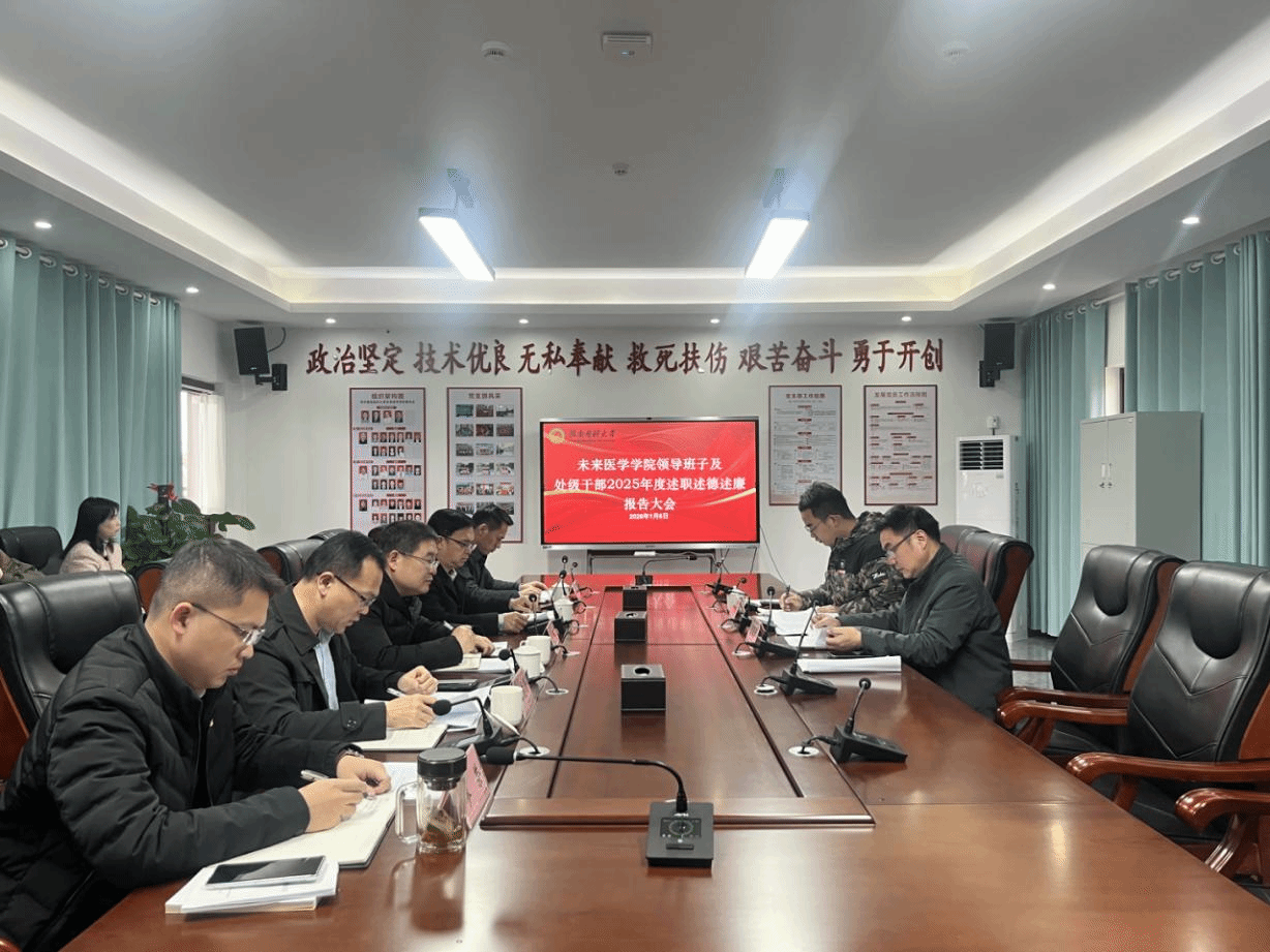 1月6日上午,未来医学学院召开2025年度党委领导班子及处级干部述职评议大会。学校测评组到会指导,学院处级干部、全体教职工及学生代表参会。