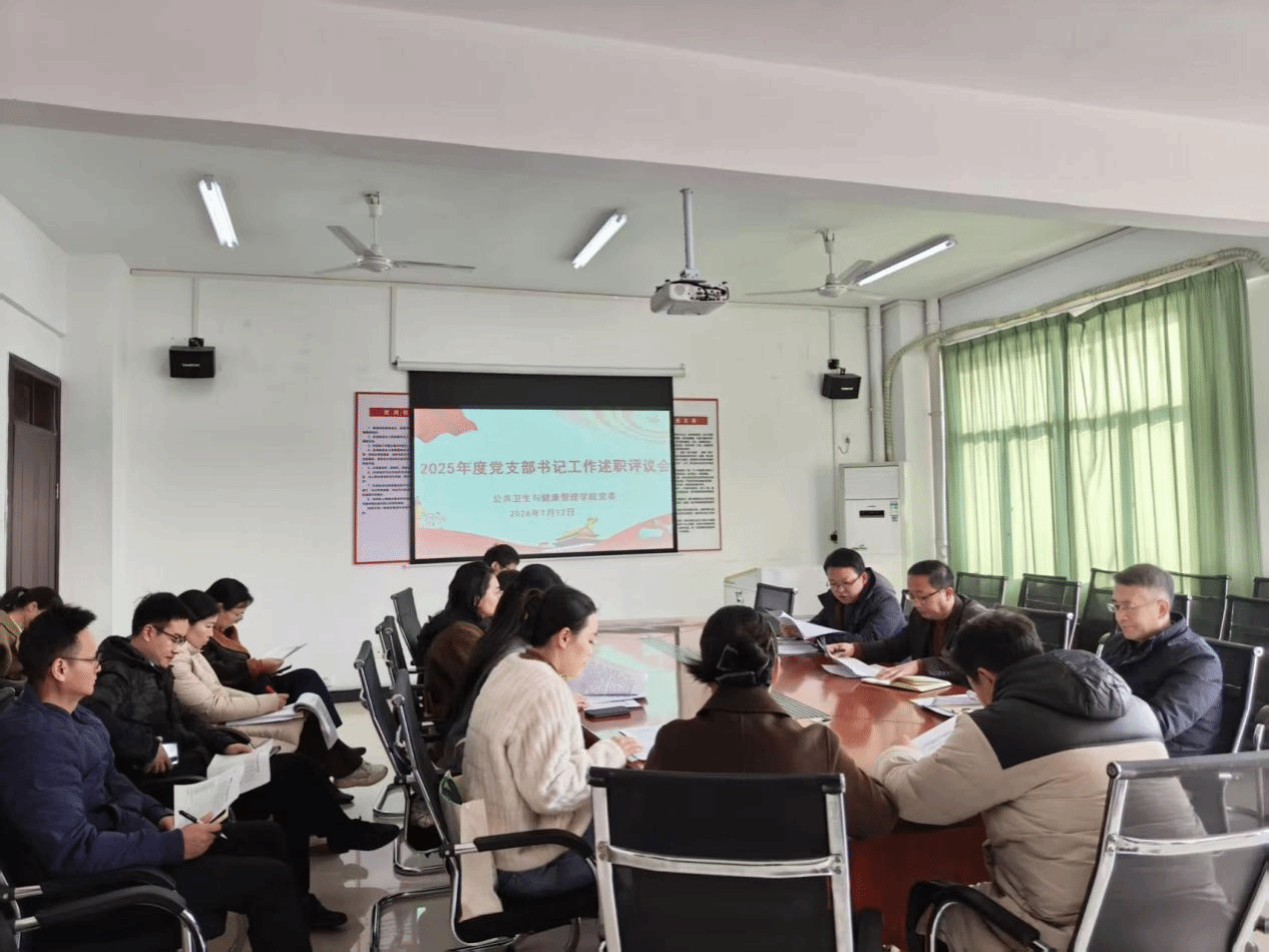 1月12日上午,公共卫生与健康管理学院党委召开2025年度党支部书记工作述职评议会,学院班子成员、党支部书记、科室负责人及师生代表参会,学院党委副书记曾发挥主持会议。