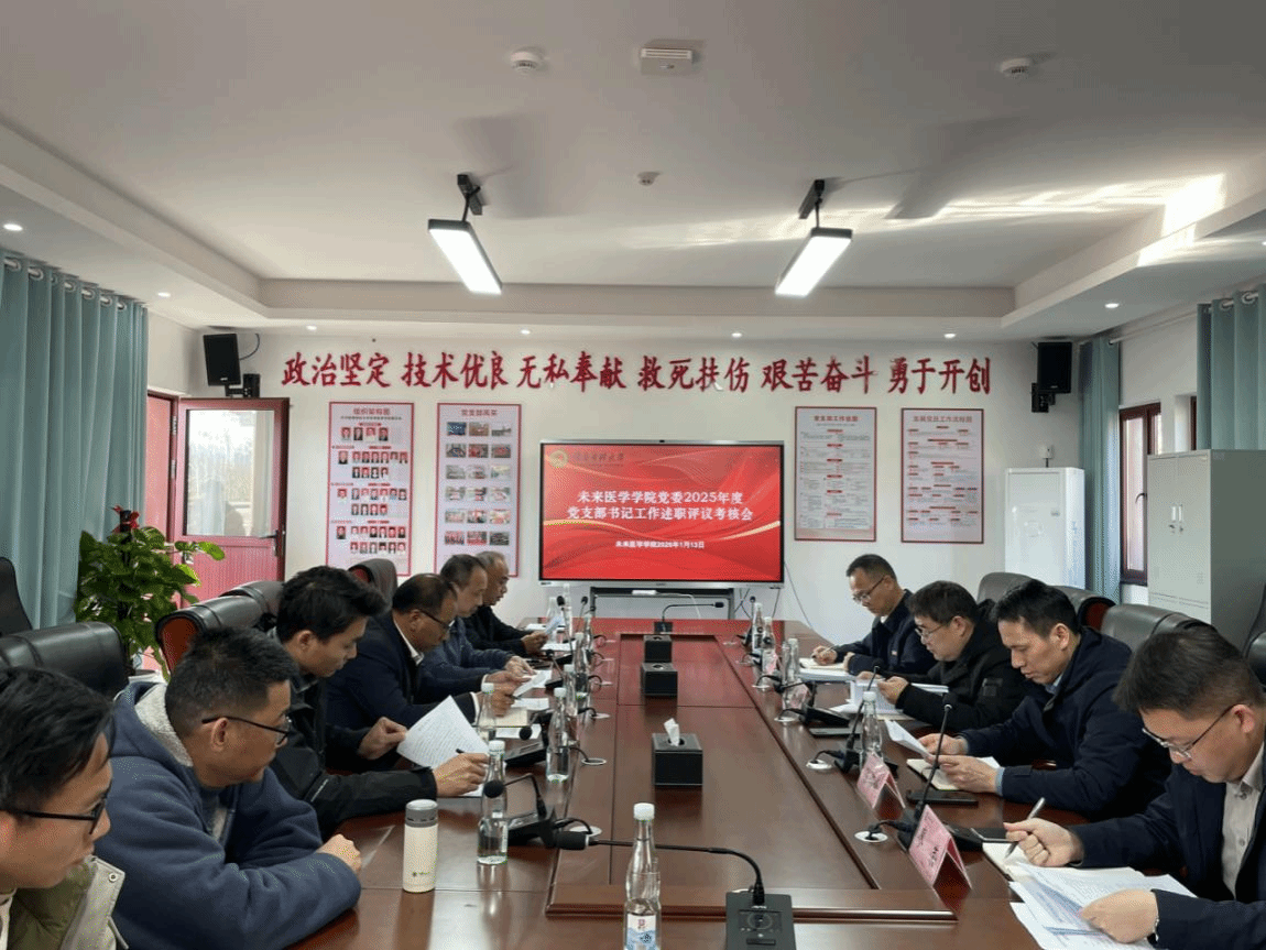 1月13日,未来医学学院党委在龙南校区召开2025年度党支部书记工作述职评议考核会议。未来医学学院党委班子成员、党支部书记、党员和学生代表参加会议,学院党委书记朱修援主持会议。