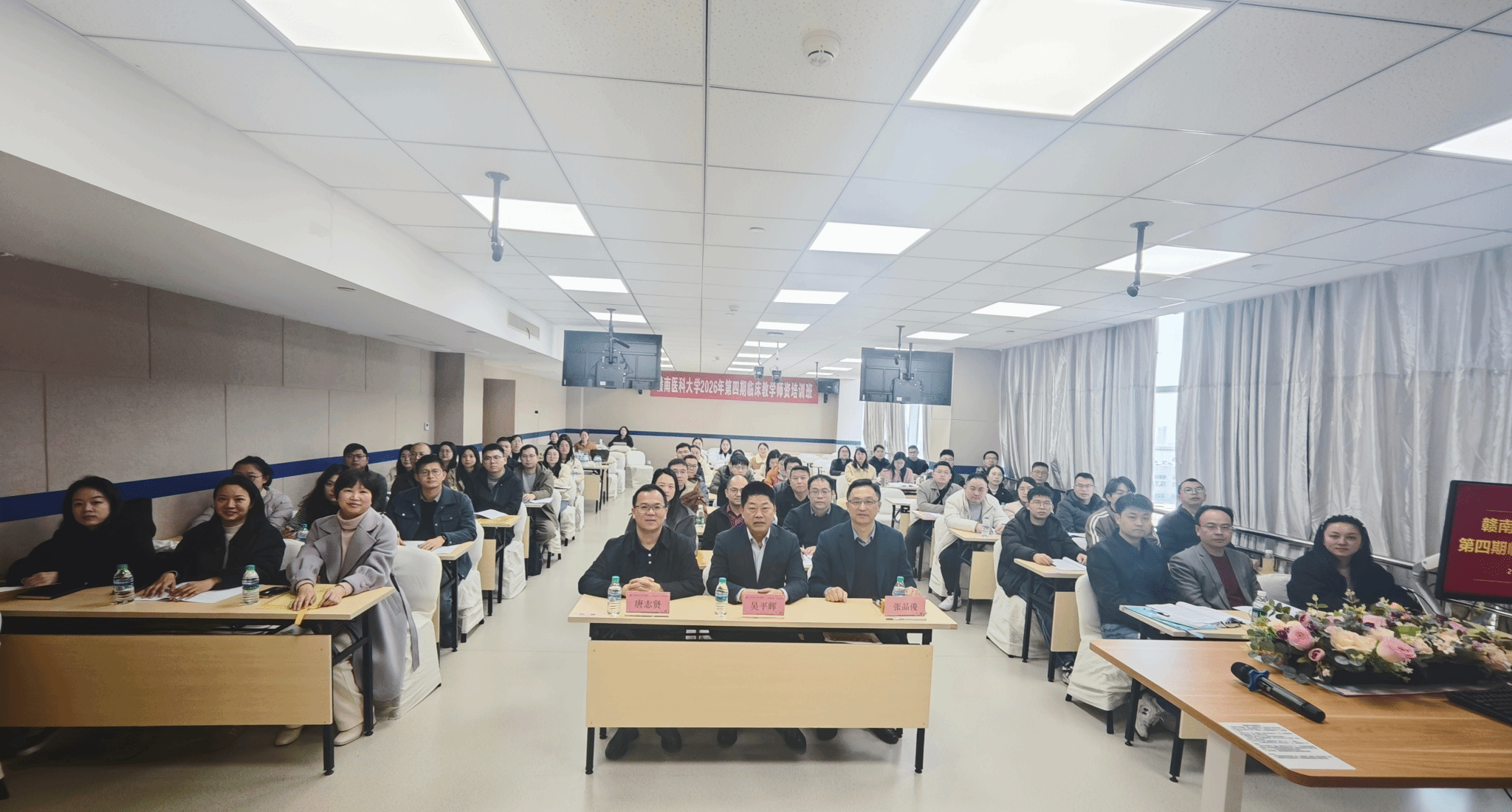 2月13日,在第一附属医院黄金院区举办2026年第四期临床教学师资培训班,培训附属龙南医院(龙南市第一人民医院)、第二附属医院、附属于都医院(于都县人民医院)、附属老年医院(赣州市第三人民医院)临床教师代表,共计53人。