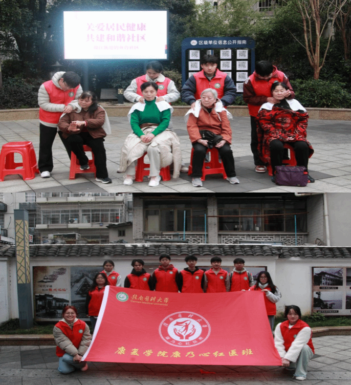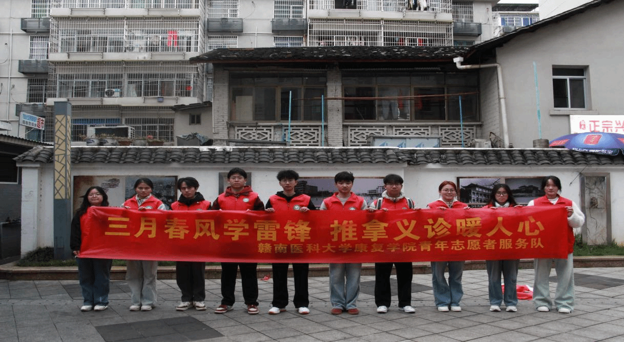 为进一步传承和弘扬雷锋精神,践行志愿服务理念,在第63个学雷锋纪念日来临之际,康复学院“康乃心”红医班组织志愿者前往章贡区钓鱼台社区,开展“推拿义诊进社区,健康关怀暖人心”志愿服务活动,通过推拿调理、血压监测、健康知识宣讲等多元服务,为社区居民提供精准、贴心的健康服务。