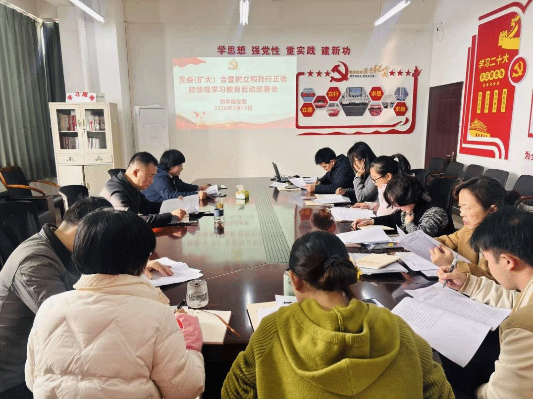 3月10日上午,药学院召开党委(扩大)会暨树立和践行正确政绩观学习教育启动部署会,该院党委领导班子、各党支部书记参加会议。该院党委书记彭磊主持会议并作启动部署讲话。