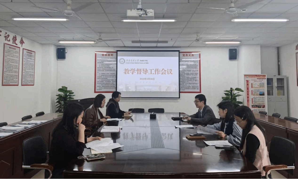 为进一步强化教学质量监控,规范教学管理流程,提升人才培养质量,3月26日,基础医学院召开教学督导工作会议,全面部署2026年度教学督导各项工作。会议由学院分管教学副院长陈鑫主持,学院教学督导会成员及教学管理人员参会。