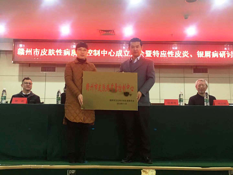 赣州市卫计委医政科科长赵乘明宣布赣州市皮肤病质量控制中心正式成立,挂靠单位为赣南医学院第一附属医院。