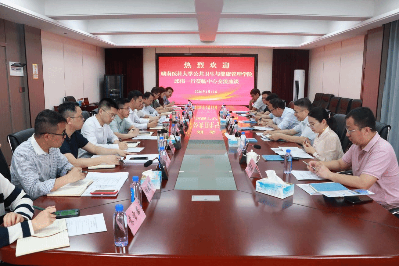 为深入推进赣南医科大学附属公共卫生中心建设,4月13日,公共卫生与健康管理学院党委书记邱伟带队赴赣州市疾控中心(市卫监局)开展交流座谈。会议由市疾控中心主任王小毛主持,学院院长胡恭华、相关分管领导,以及中心各科室负责人、业务骨干参加会议。