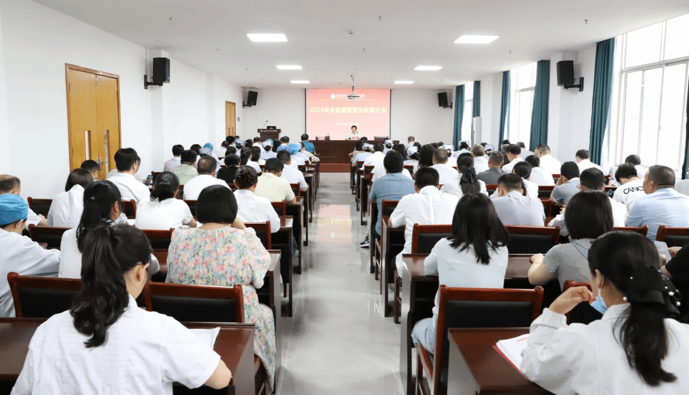 4月16日,二附院召开2026年度廉政警示教育大会。该院党政领导班子全体成员、中层干部、部分党员及医护人员代表共100余人参会。