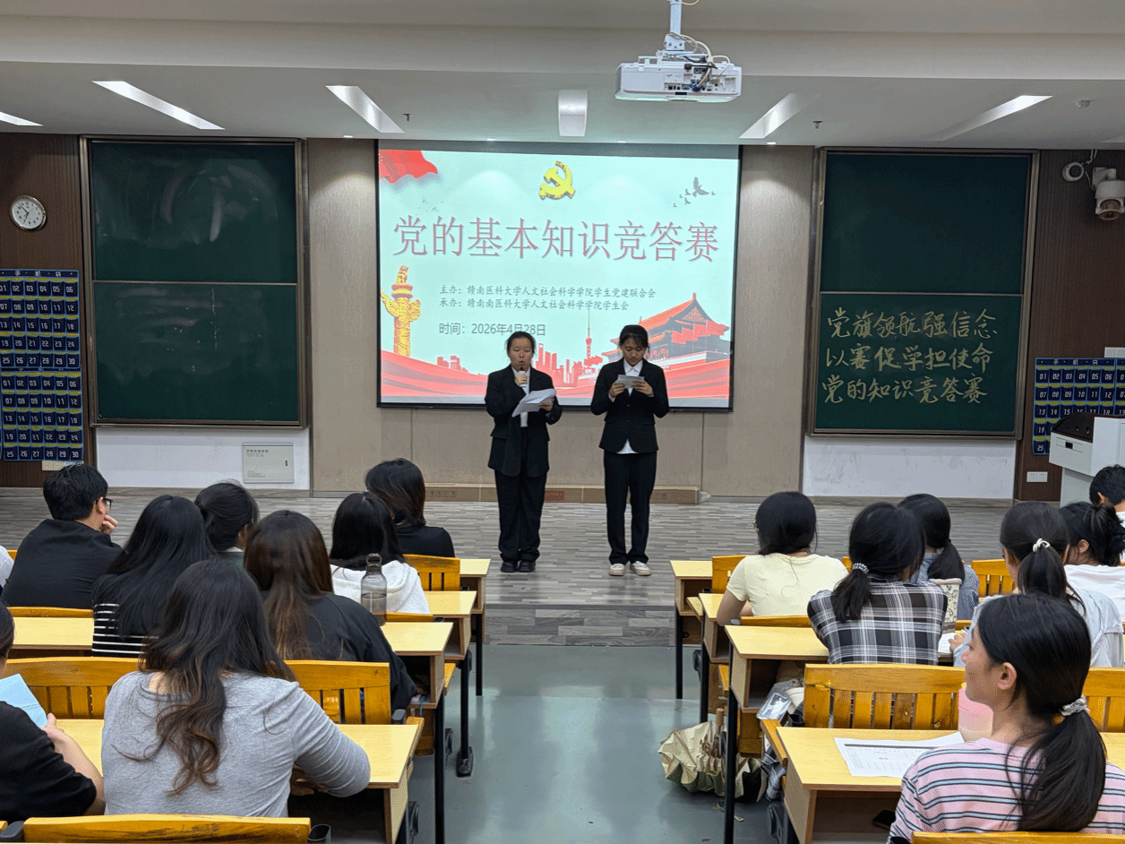 为深入落实学校“红医魂”党建品牌建设要求,深化学院“红蕴人文”特色育人内涵,扎实推进党建带团建工作走深走实,4月28日,人文社会科学学院在蓉江校区举办党的基本知识竞答赛。活动以“党旗领航强信念,以赛促学担使命”为主题,学生党员、入党积极分子和团员青年踊跃参赛,在以赛促学、以学促行中锤炼党性修养、凝聚青春力量,以饱满的热情喜迎五四青年节。