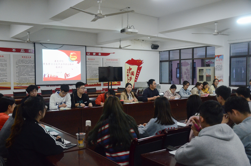 5月8日晚上,康复学院举行师生座谈会,学习座谈习近平总书记在纪念五四运动100周年大会上的重要讲话精神。该院党委副书记叶贞丽、学工办老师及全体学生干部、学生党员参会。