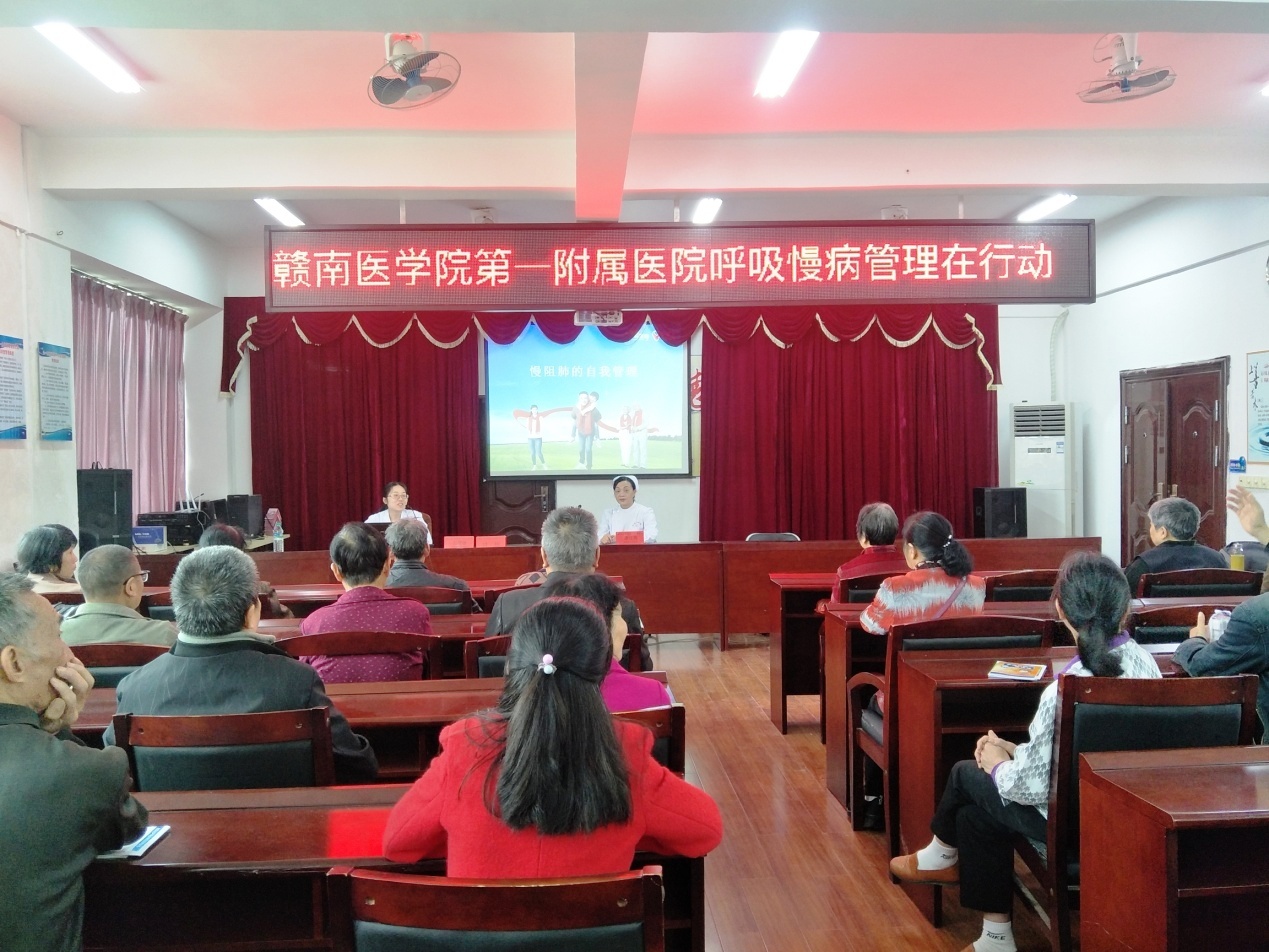 呼吸内科左慧敏开展《慢阻肺的自我管理》健康讲座,陈根秀护士长现场带领大家一起做呼吸操。