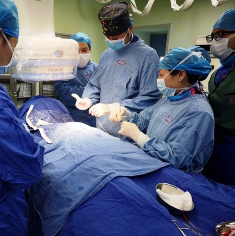 同时,由王小萍带领心内科电生理团队现场演示腋静脉穿刺、双螺旋电极植入、术中影像解读、起搏心电图分析、起搏器程控参数及设置。