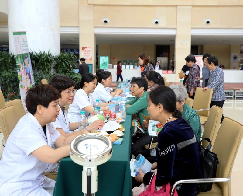 该院“全民营养周”期间,通过屏幕播放、悬挂横幅、发放宣传资料等方式宣传“合理膳食”理念,开展专家宣讲、义诊咨询、患者“治疗饮食”体验、营养宣传志愿者培训等,让广大群众深刻认识和直觉感知到营养健康、合理膳食的重要性及可操作性。