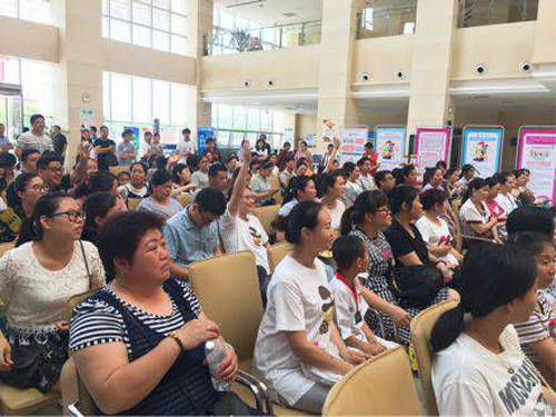 该院产科副护士长罗峰现场为孕妈宝妈及宝爸们讲解母乳喂养专业知识,详细介绍母乳成分、新生儿奶水需要量、喂奶姿势及母乳喂养的好处。为激发宝爸宝妈们的学习热情,罗护士长现场进行互动有奖竞答,现场气氛火热。