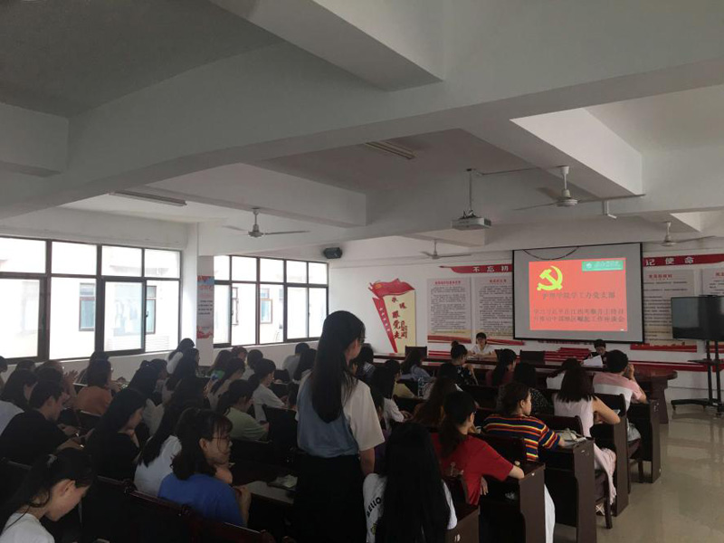 5月28日,护理学院全体教职工和学生党员学习习近平总书记在江西、赣州考察期间的重要讲话精神。