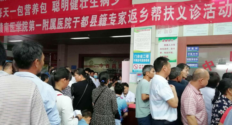 该院多学科强大义诊专家团,非于都籍专家颜登鲁、王茂源、孙小勇等博士也加入团队,当天一大早,由副院长徐小军博士率领的21人专家团队来到于都县第三人民医院时已是人头攒动,门诊大厅等处每张专家义诊台前都排起了长长的队伍。面对老乡们的热切期盼和信任目光,专家们迅速投入到义诊活动中。