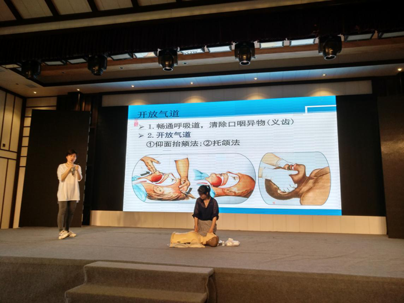 另一组在村委会为当地百姓进行急救知识培训和指导,急危重症护理学教研室温艳萍老师为村民们讲授了心肺复苏、溺水、气道异物梗阻等急救知识。