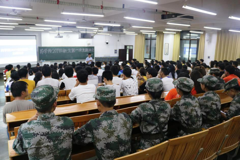 晚上,该院新生各班级召开主题班会,班主任从学校、学院概况和大家即将开始的大学生活与学习作出详细介绍和安排,同时对学生在校的人身、财产等安全问题做了提醒。