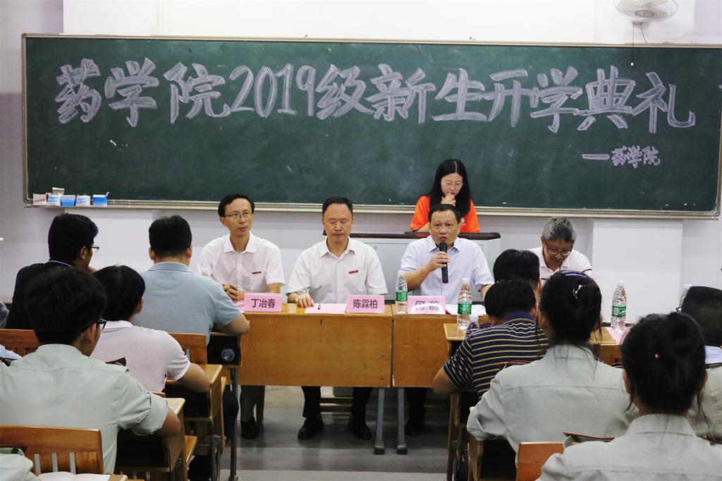 9月4日晚,药学院在黄金校区举行2019级新生入学教育。该院党委书记陈霖柏,院长何蔚,副院长赖日勇、丁冶春等,以及2019级全体新生参加。