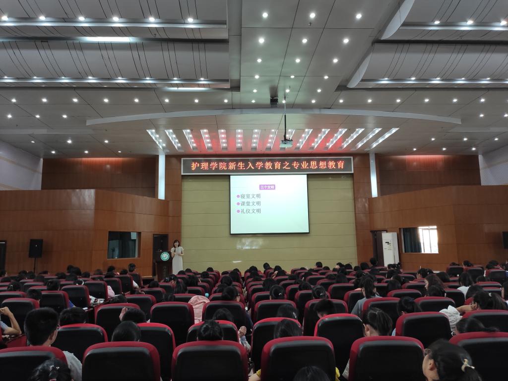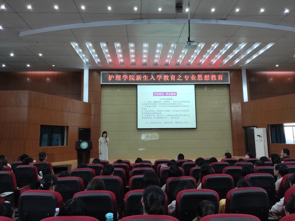 9月22日上午,护理学院在黄金校区举办2019级新生入学教育,该院院长丁梅主讲,该院全体学工干部、新生班主任及2019级全体新生到场聆听。