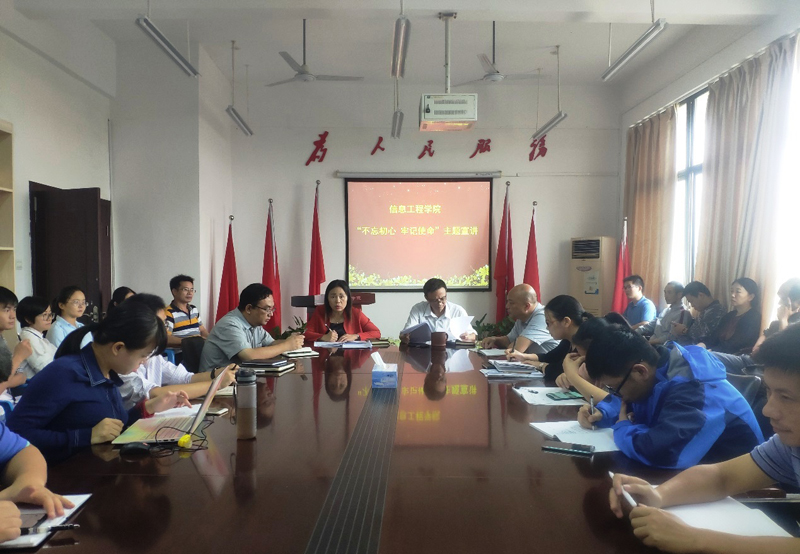 10月15日,信息工程学院院长盛瑶环开展“不忘初心、牢记使命”主题宣讲。该院党政领导、教工党员、科室主任参加。
